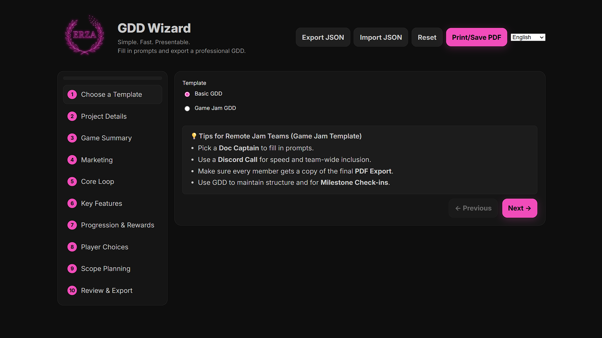 GitHub Repo: https://github.com/Studio-Erza/gdd-wizard
